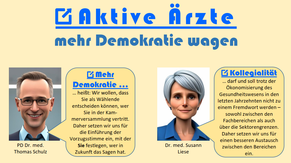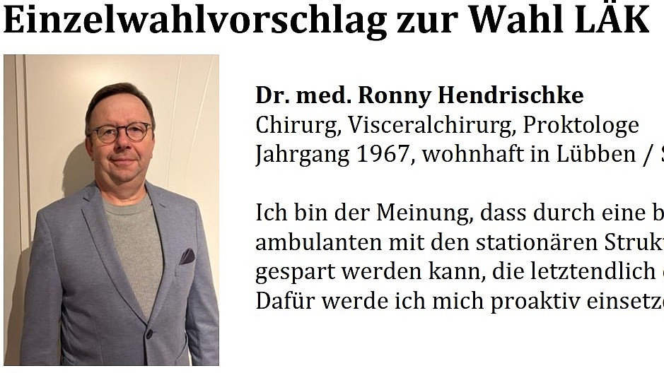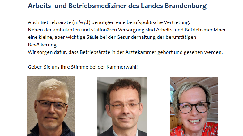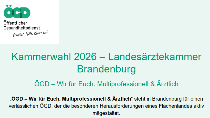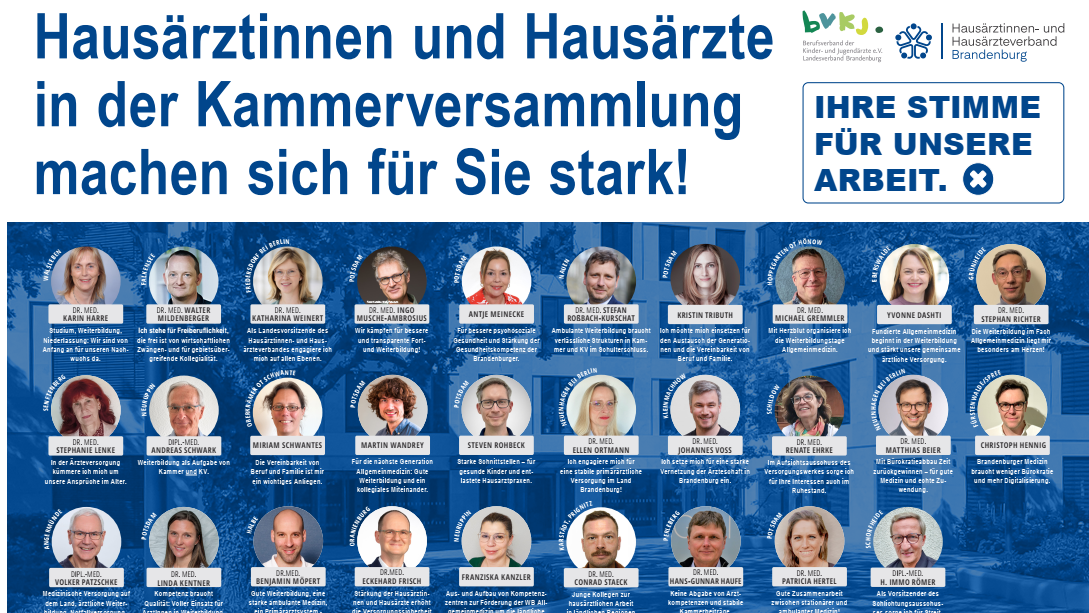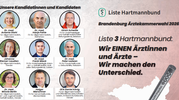 Für Einzel- oder Listenwahlvorschläge besteht für die Kammerwahl 2026 die Möglichkeit, hier auf der Webseite der Kammer sowie in einer Sonderbeilage des Brandenburgischen Ärzteblatts im März 2026 Wahlwerbung zu schalten.
